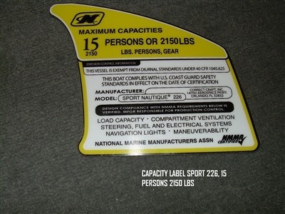 CAPACITY LABEL SPORT 226 15 PERSONS 2150 LBS